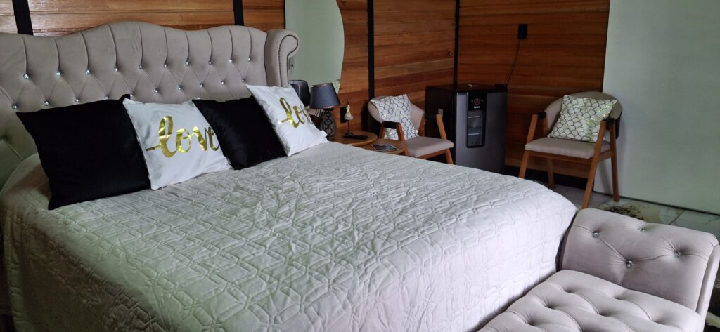 Conforme Raquel Albuquerque, inicialmente a ideia era construir apenas dois chalés e uma área de lazer. No período de cinco anos de trabalho, já são 10, todos confortáveis e aconchegantes. Três deles contêm sistema de hidromassagem e uma decoração mais sofisticada, além da opção de dois e três quartos, ou se preferir, apenas para o casal. “Devido a demanda, os demais chalés também serão contemplados com as banheiras de hidromassagem. Para se ter ideia das diárias, são aplicados três valores diferentes, de R$ 800 a R$ 1,2 mil para o casal”, revela Raquel.